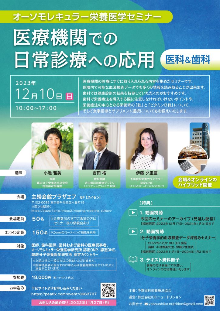 オーソモレキュラー栄養医学セミナー「医療機関での日常診療への応用」2023年12月10日(日)